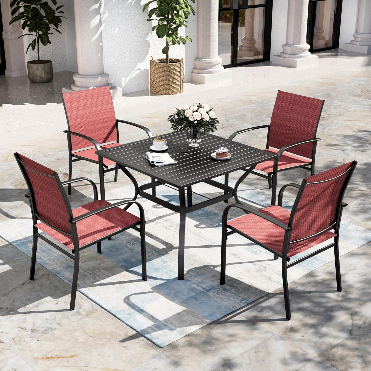 • DURABLE & WEATHER-RESISTANT: SUNSHINE VALLEY patio dining set is built to last. The heavy-duty steel frame features a dual-layer powder and E-coating, providing superior, long-term protection against rust, scratches, and all weather conditions